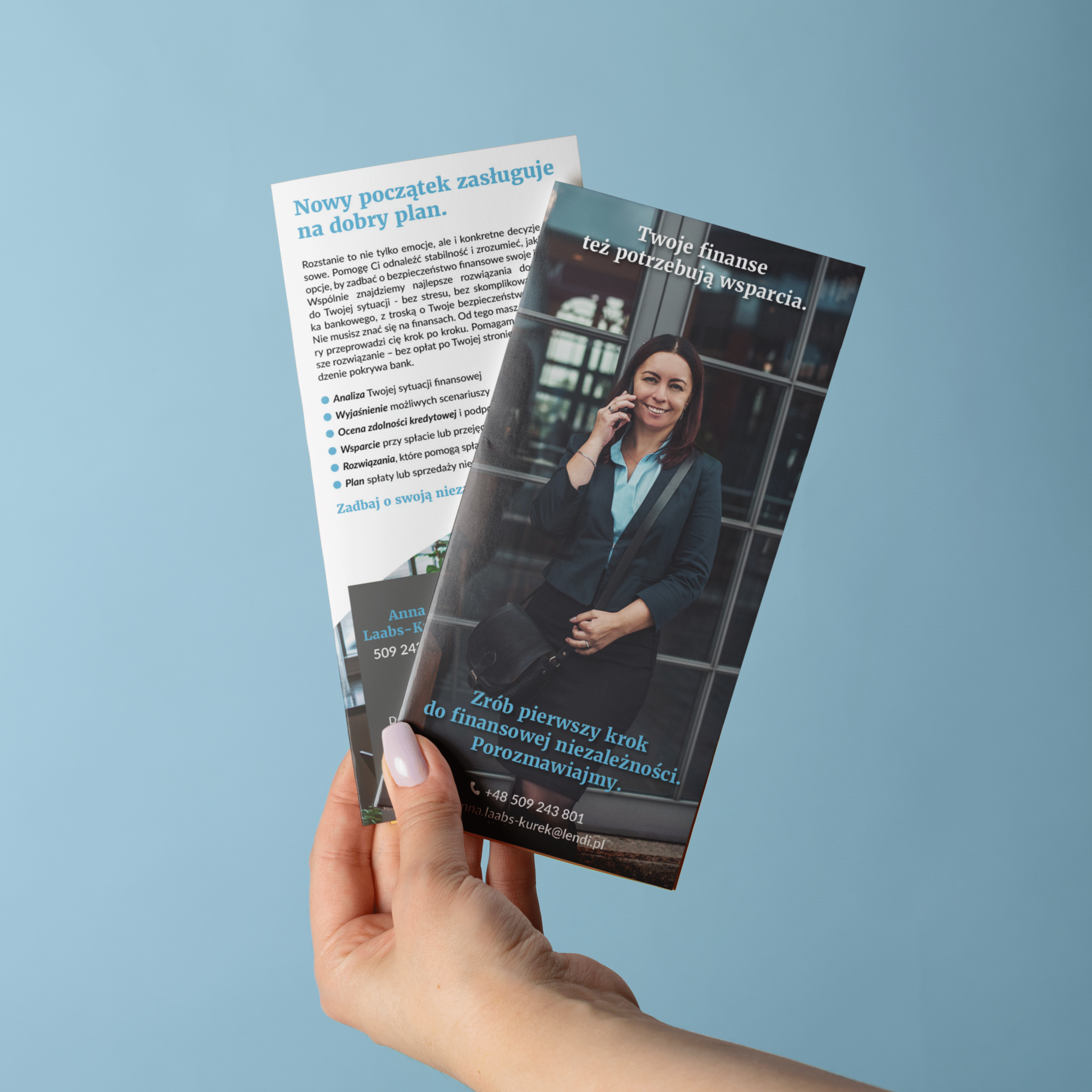 W tej sekcji zgromadziłam projekty ulotek, które stworzyłam dla różnych klientów, reprezentujących różnorodne branże i potrzeby. Każdy projekt odzwierciedla indywidualne wymagania i charakter zamawiającego, dzięki czemu ulotki nie tylko spełniają swoje funkcje informacyjne, ale również skutecznie przyciągają uwagę odbiorców. Każda ulotka posiada unikalny design, starannie dopasowany do specyfiki firmy, jej wizji oraz grupy docelowej. Moim celem było stworzenie materiałów, które są nie tylko estetyczne, ale także funkcjonalne, wyraźnie komunikując wartości i ofertę klienta.